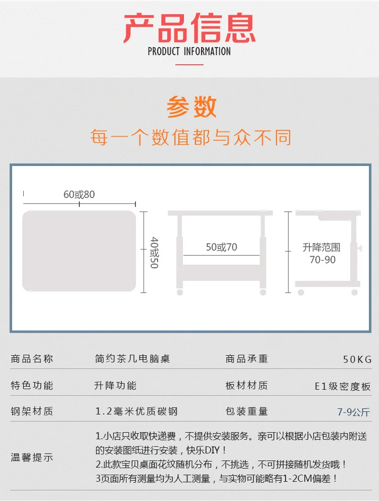 Дополнительная информация о LK581 портативный 80*40 см компьютерный стол с шкивом 50kg-загрузка стол для ноутбука для кровати регулируемая высота панели + стальной стол для но...