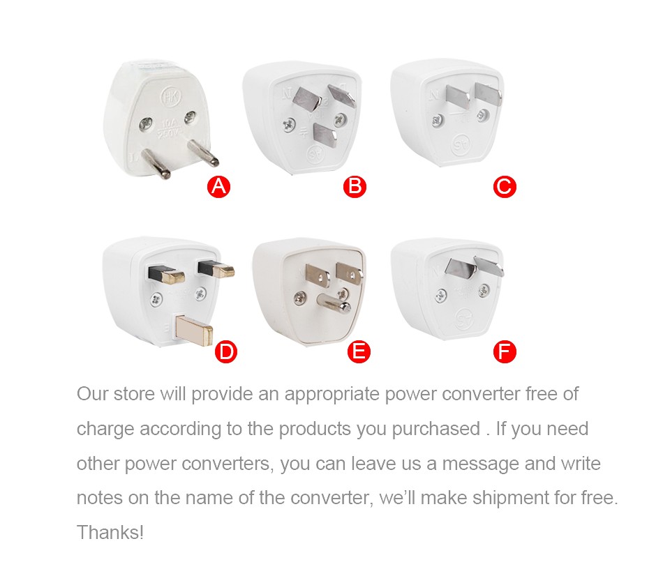 наша продукция с европейской вилкой, пожалуйста, убедитесь, что он подходит для вашей страны или нет! если нет, то pls не забудьте оставить нам сообщение скажите мне, какой из них вам нужно, я могу отправить вам конвертировать плагин бесплатно! спасибо!